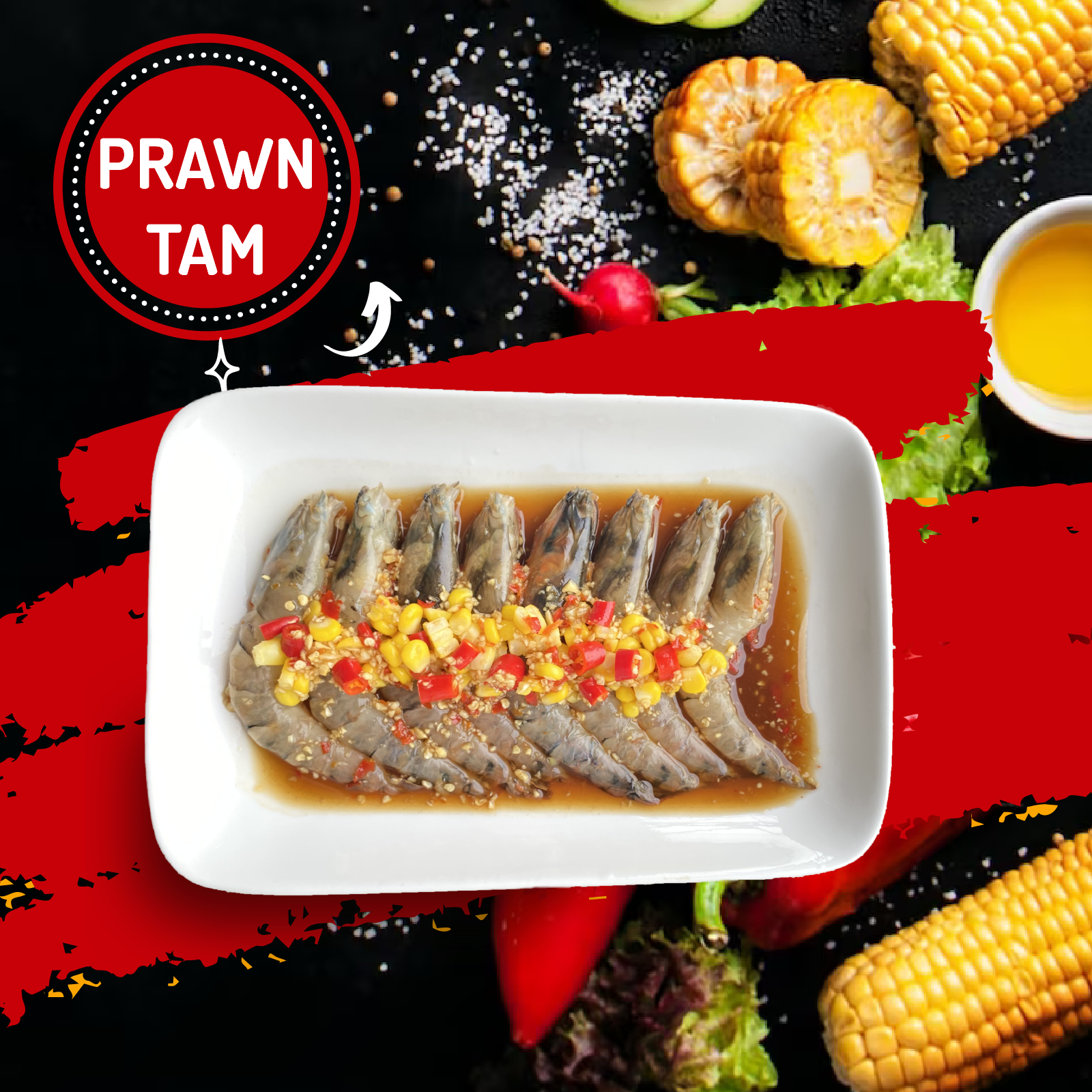 3) The ingredients are [🧄Garlic,🌽 Corn, Thai Papaya Salad dressing, 🍋Lime Juice and 🌶Chili Padi]